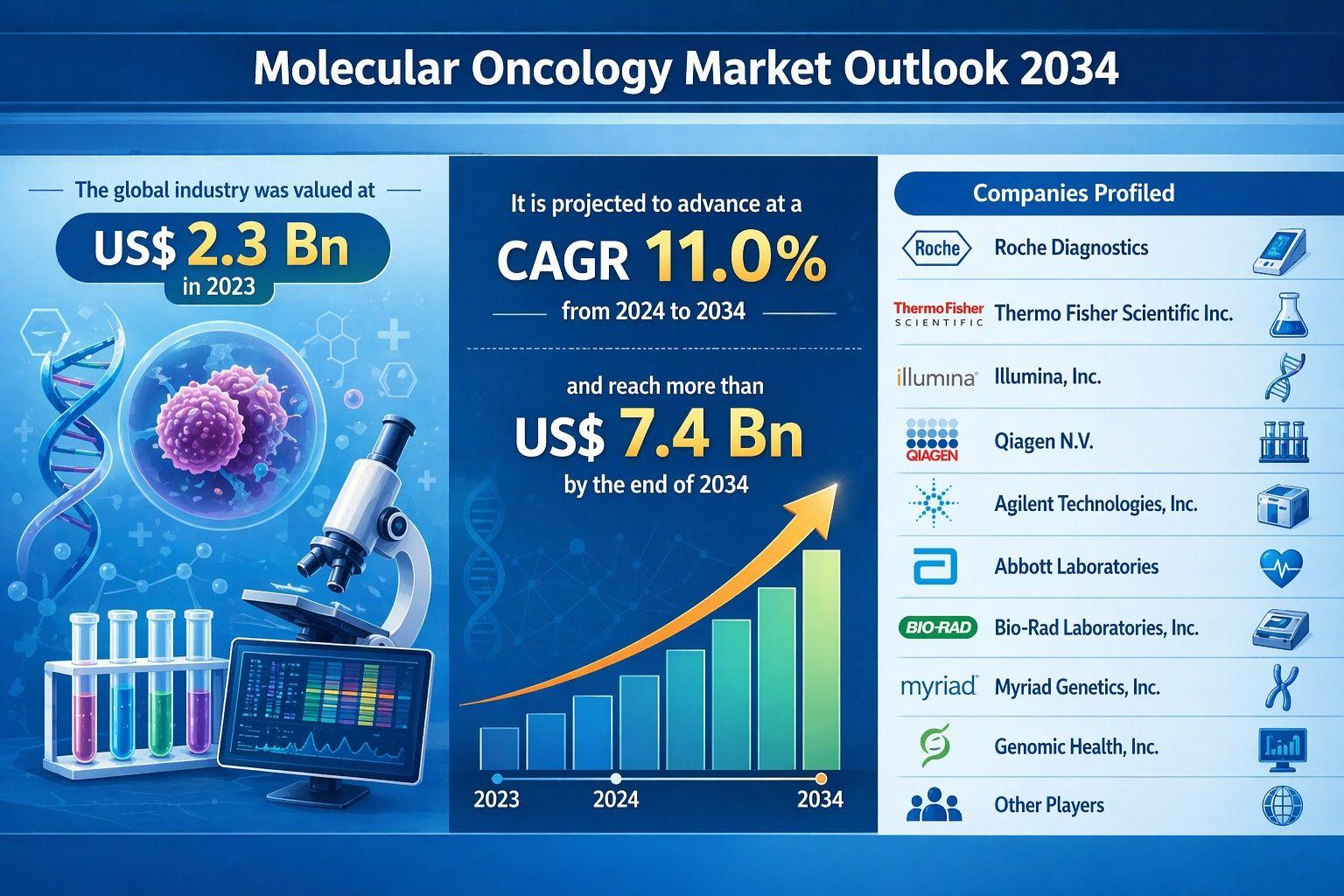 Decoding Cancer at the Genetic Level: Molecular Oncology Market Set to Grow from USD 2.3 Billion in 2023 to Over US$ 7.4 Billion by 2034 at 11.0% CAGR