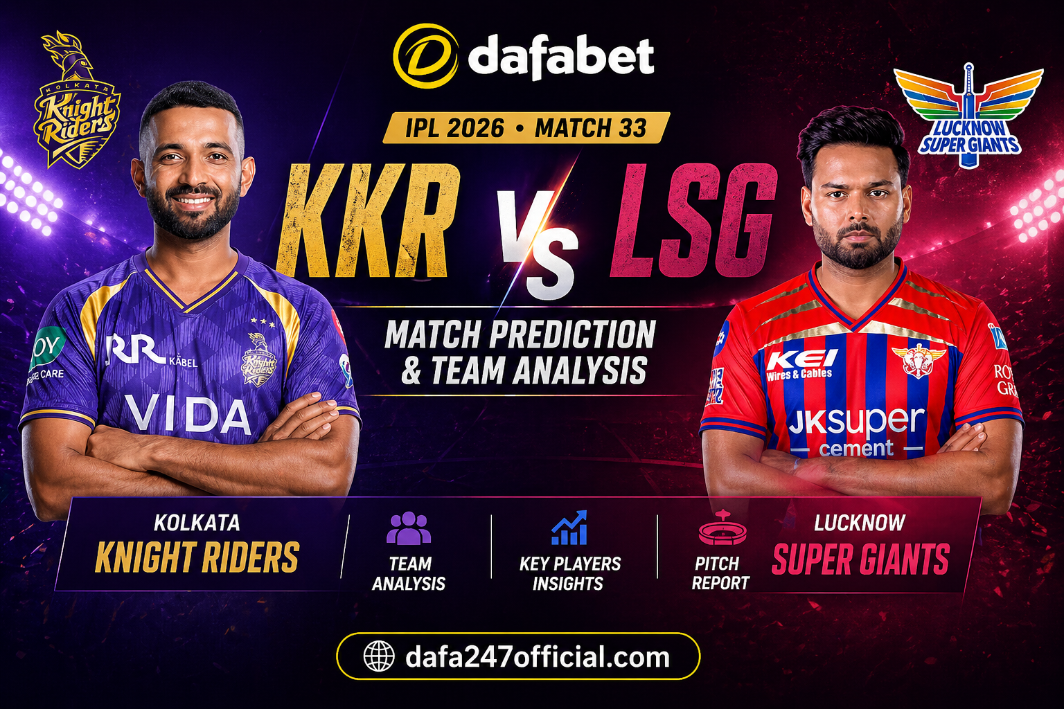 Who Will Win LSG vs KKR? IPL 2026 Insights by Dafabet