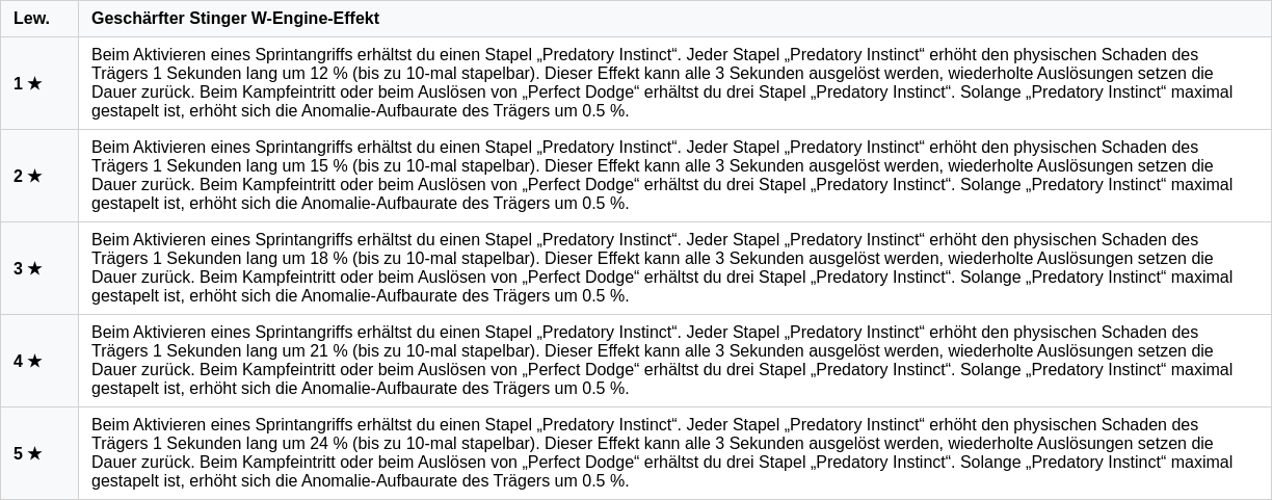 Ist „Predatory Instinct“ maximal gestapelt, erhöht sich die Anomalie-Aufbaurate des Trägers um 0,5 %.