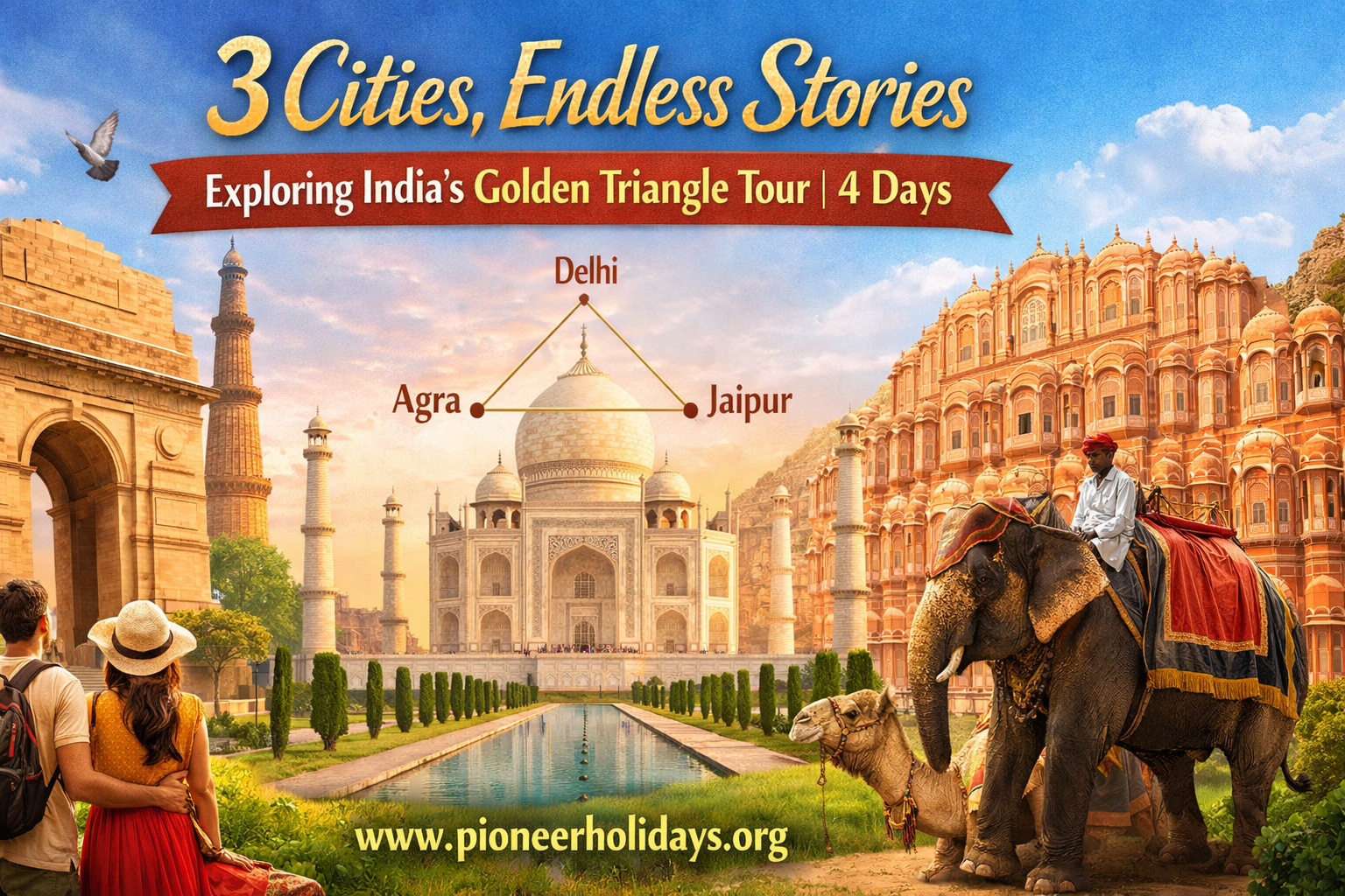 India's heart beats with ancient tales, vibrant chaos, and serene wonders—imagine unlocking them all in one seamless adventure. The Golden Triangle tour 4 days from Pioneer Holidays whisks you through Delhi, Agra, and Jaipur, blending Mughal grandeur with Rajput valor. As a trusted name in Indian tourism, Pioneer Holidays designs this itinerary for first-time explorers craving depth without rush.