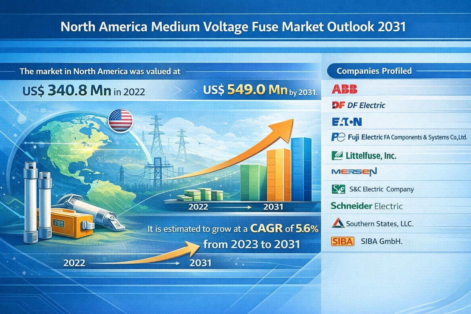 North America Medium Voltage Fuse Market Outlook 2031: Rising Electrification, Smart Grid Expansion, and Renewable Energy Integration Driving 5.6% CAGR Growth