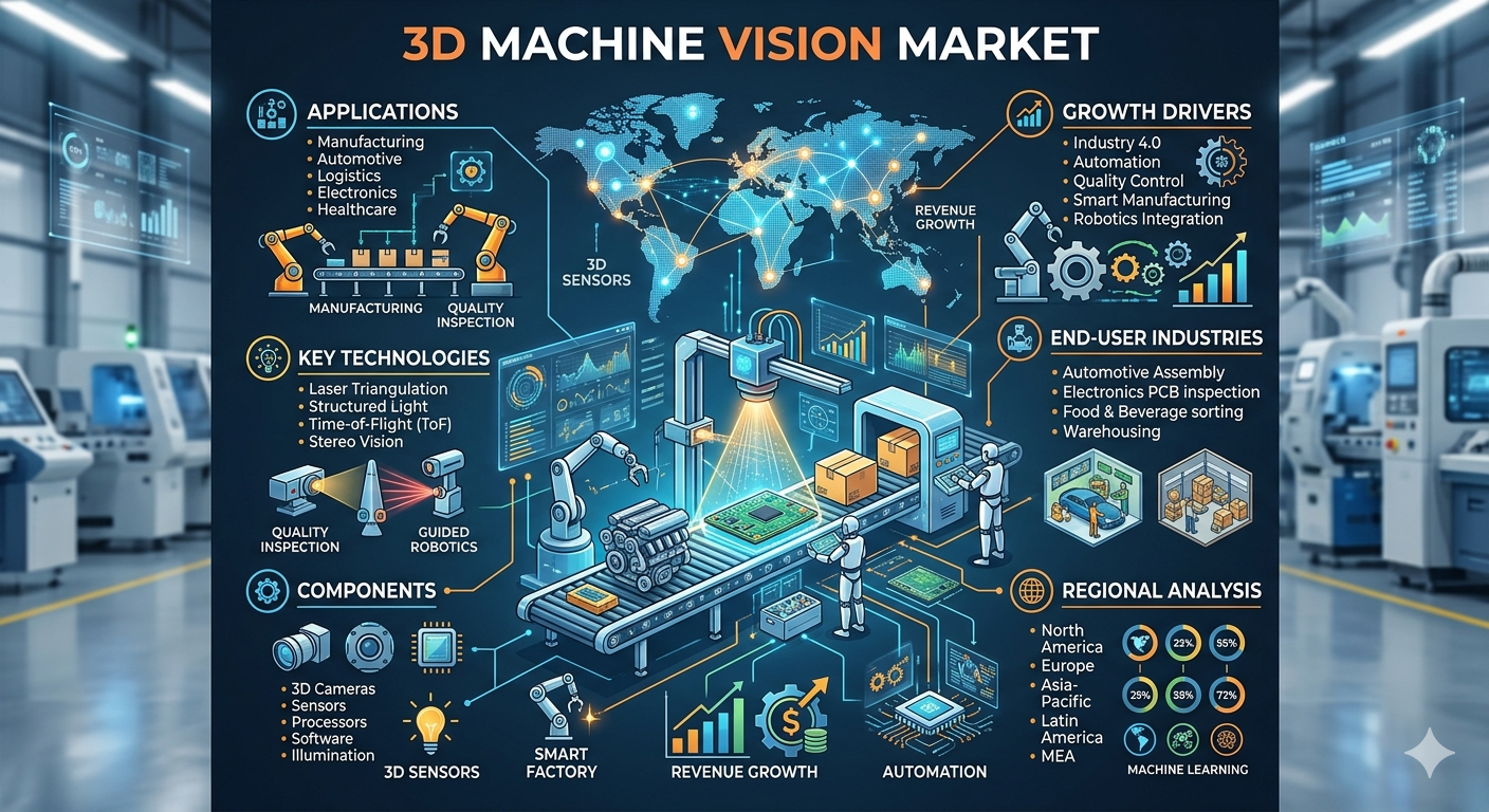 Automation and intelligent manufacturing systems are transforming industries globally, enabling higher efficiency, accuracy, and safety in production processes. Technologies that allow machines to “see” and interpret objects in three dimensions are increasingly being integrated into industrial workflows to improve quality control, reduce defects, and enhance operational efficiency. With the adoption of robotics, artificial intelligence, and advanced inspection systems, companies are leveraging cutting-edge vision technologies to meet the demands of modern production environments. The growing emphasis on smart factories, precision engineering, and real-time analytics is driving widespread adoption of innovative machine vision solutions.