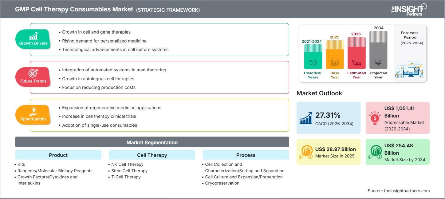 According to the latest insights, the global GMP Cell Therapy Consumables market is projected to grow from US$ 28.97 billion in 2025 to US$ 254.48 billion by 2034, registering a robust CAGR of 27.31% during 2026–2034. The Market Share Analysis by Geography indicates that North America holds the largest market share due to a mature biotech ecosystem, strong R&D investments, and extensive clinical trial activity. Meanwhile, Asia-Pacific is expected to achieve the highest growth rate, driven by government initiatives, expanding biopharmaceutical investments, and rising healthcare infrastructure, creating significant opportunities for manufacturers and investors.