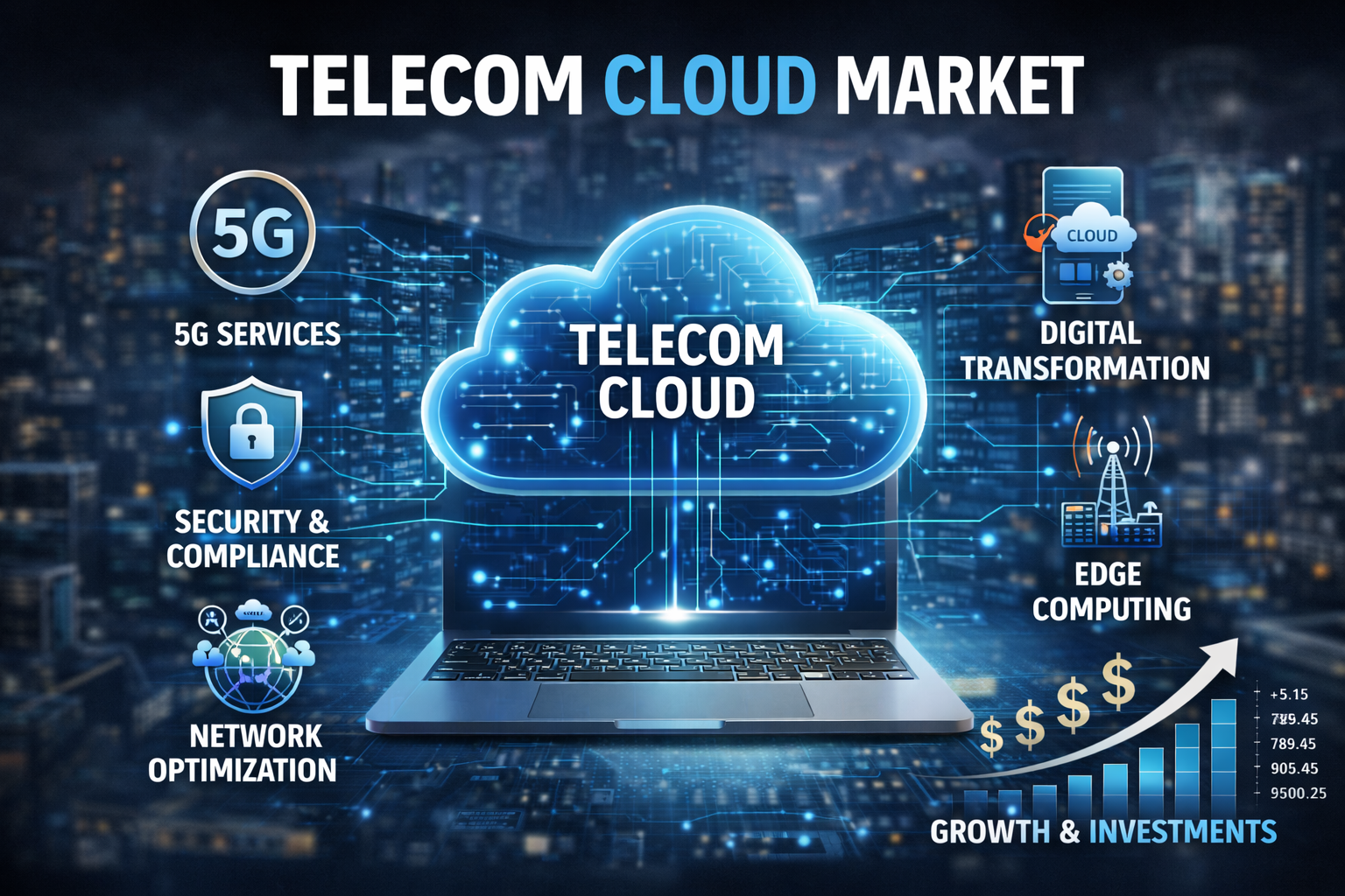 The rapid rollout of 5G networks is a major driver of the telecom cloud market. 5G requires advanced, cloud-native architectures to support ultra-low latency, high-speed connectivity, and massive device connectivity.