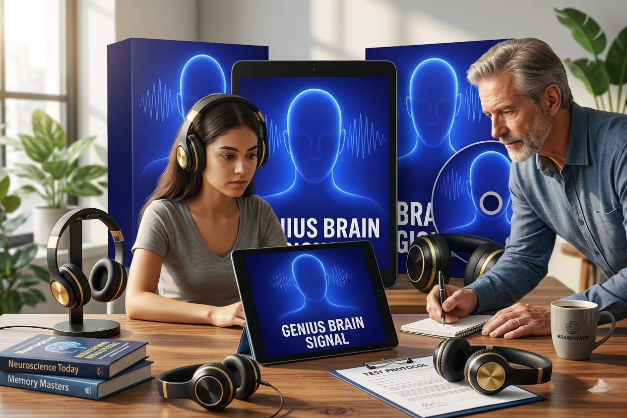 Genius Brain Signal is an audio-based program designed to enhance focus, memory, and cognitive performance.