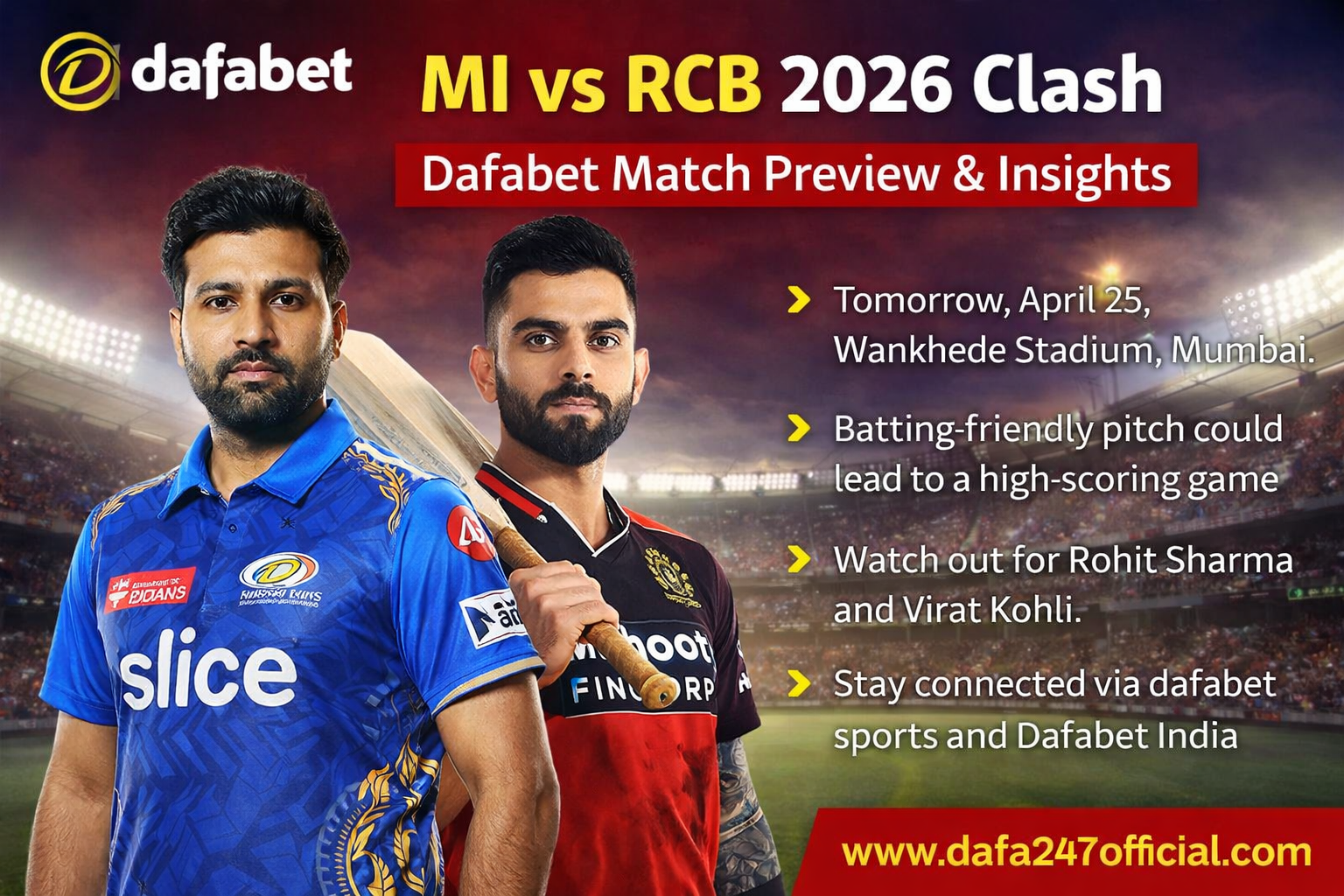 MI vs RCB 2026 Clash: Dafabet Match Preview & Insights