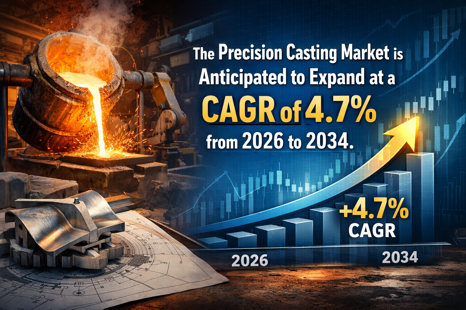 The Precision Casting Market is anticipated to expand at a CAGR of 4.7% from 2026 to 2034. This growth is underpinned by the increasing demand for high performance alloys in various heavy industries. The ability of precision casting to minimize material waste is a significant factor driving its adoption, as industries look for ways to optimize production costs while maintaining high quality standards. Financial analysts observe that the stability of this market is tied to the continuous innovation in material science, allowing for the casting of specialized metals such as titanium and nickel based superalloys that are necessary for extreme environments.