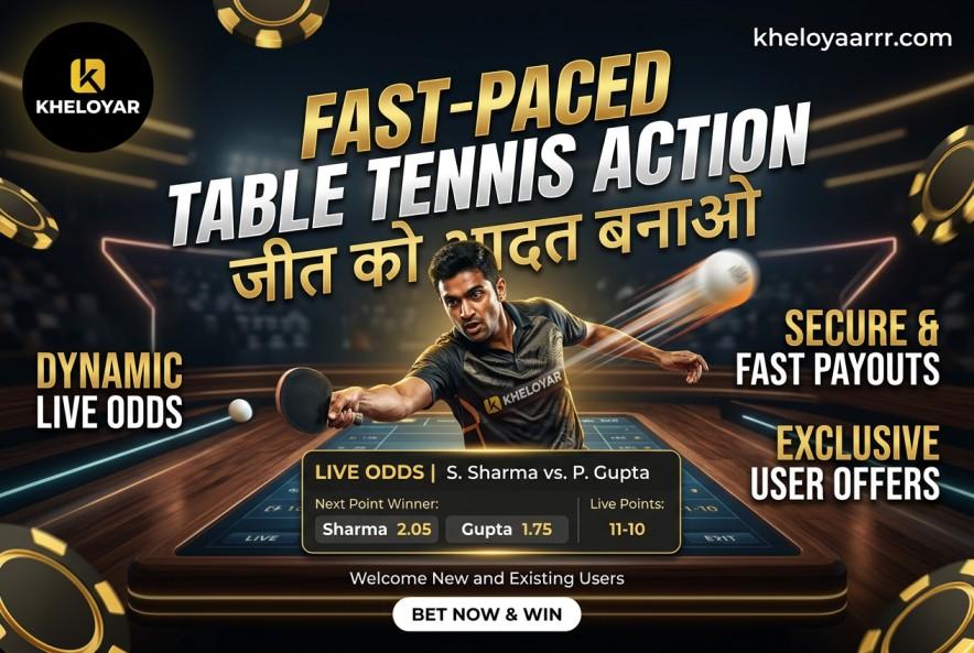 Table tennis matches that are fast-paced play on Kheloyar average 12 minutes per match with live point-by-point betting.