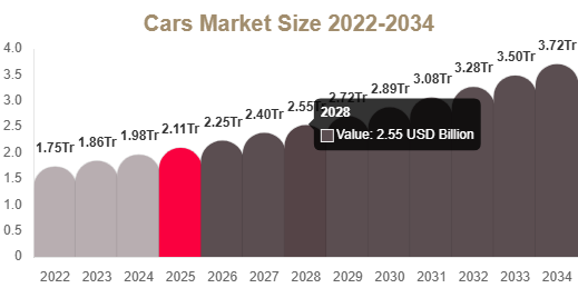 As per Redline Pulse, the cars market includes detailed valuation for the base year 2025, along with forecast projections up to 2034 and a defined CAGR during the analysis period.