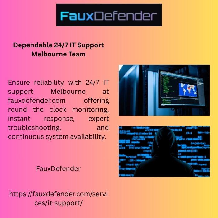 Ensure reliability with 24/7 IT support Melbourne at fauxdefender.com offering round the clock monitoring, instant response, expert troubleshooting, and continuous system availability.