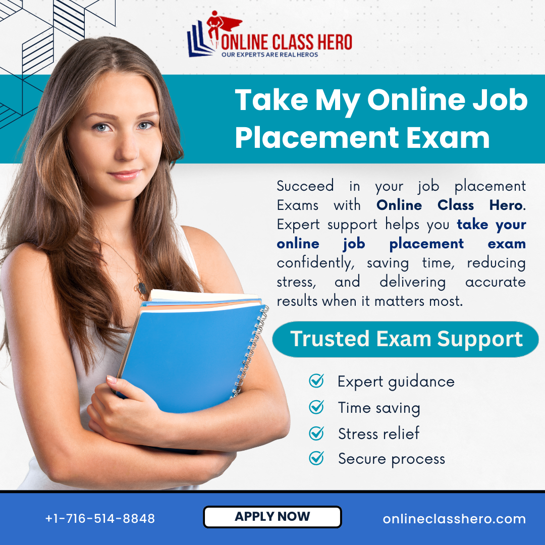 Preparing for a job placement test can feel challenging when strict timelines and complex formats are involved. Online Class Hero provides structured academic support for students searching for Take My Online Job Placement Exam guidance. With organized preparation strategies, subject clarification, and reliable study assistance, learners can approach placement exams.