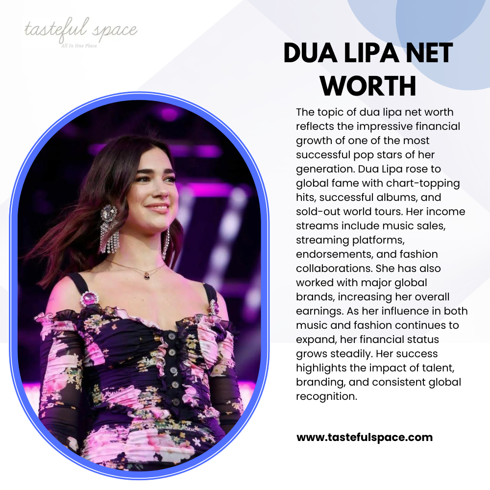 Read More: https://www.tastefulspace.com/2023/03/23/dua-lipa-net-worth/The topic of dua lipa net worth reflects the impressive financial growth of one of the most successful pop stars of her generation. Dua Lipa rose to global fame with chart-topping hits, successful albums, and sold-out world tours. Read More: https://www.tastefulspace.com/2023/03/23/dua-lipa-net-worth/0 Commenti ·0 condivisioni ·8 Views ·0 Anteprima -