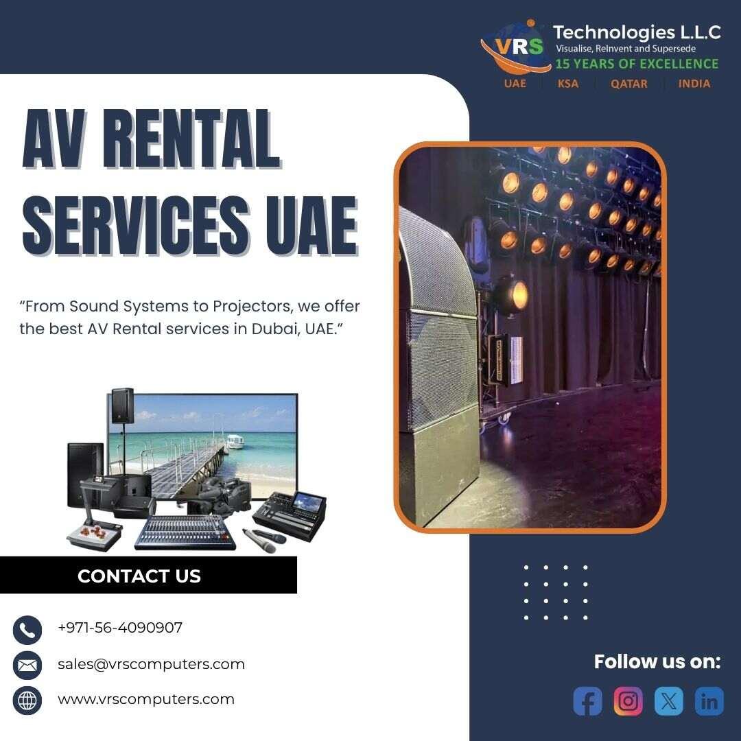 Professional Audio-Visual Rentals for Events in UAE Professional Audio-Visual Rentals make your event look and sound amazing for Events in UAE. With VRS Technologies LLC, you get the best Audio Visual Rental Services Dubai at affordable prices. From sound systems to LED screens, everything is set up perfectly. For bookings, call +971-56-4090907. Visit: https://www.vrscomputers.com/computer-rentals/audio-visual-rental-in-dubai/ #avrentaldubai #audiovisualrentalservices #avrentalnearme #avrentaluae