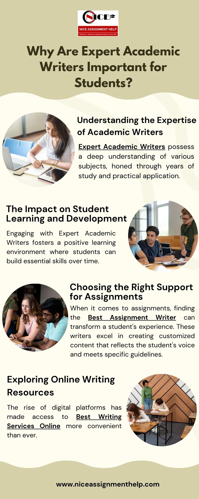 Why Are Expert Academic Writers Important for Students? Get dependable help from Expert Academic Writers who deliver accurate, well-researched academic solutions. Our professionals focus on originality, timely delivery, and subject-specific expertise to support student success. Trust Expert Academic Writers at Nice Assignment Help for consistent academic excellence and confidence. For More Information: https://www.niceassignmenthelp.com/