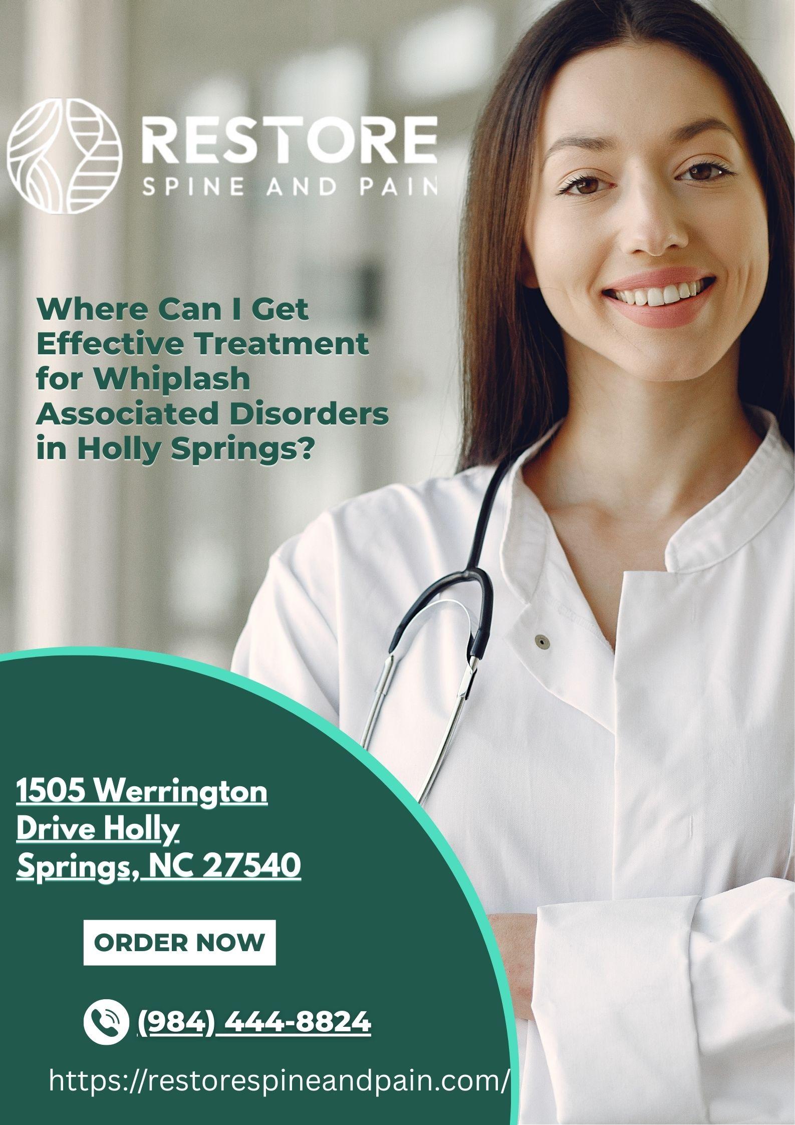 Where Can I Get Effective Treatment for Whiplash Associated Disorders in Holly Springs? Suffering from neck pain after an accident? Restore Spine and Pain in Holly Springs provides personalized care for whiplash associated disorders, focusing on pain relief, improved mobility, and long-term spinal health to help you recover safely and comfortably. Visit here: https://restorespineandpain.com/whiplash-associated-disorders/