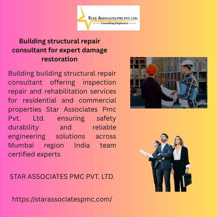 Building structural repair consultant for expert damage restoration Building building structural repair consultant offering inspection repair and rehabilitation services for residential and commercial properties Star Associates Pmc Pvt. Ltd. ensuring safety durability and reliable engineering solutions across Mumbai region India team certified experts https://starassociatespmc.com/