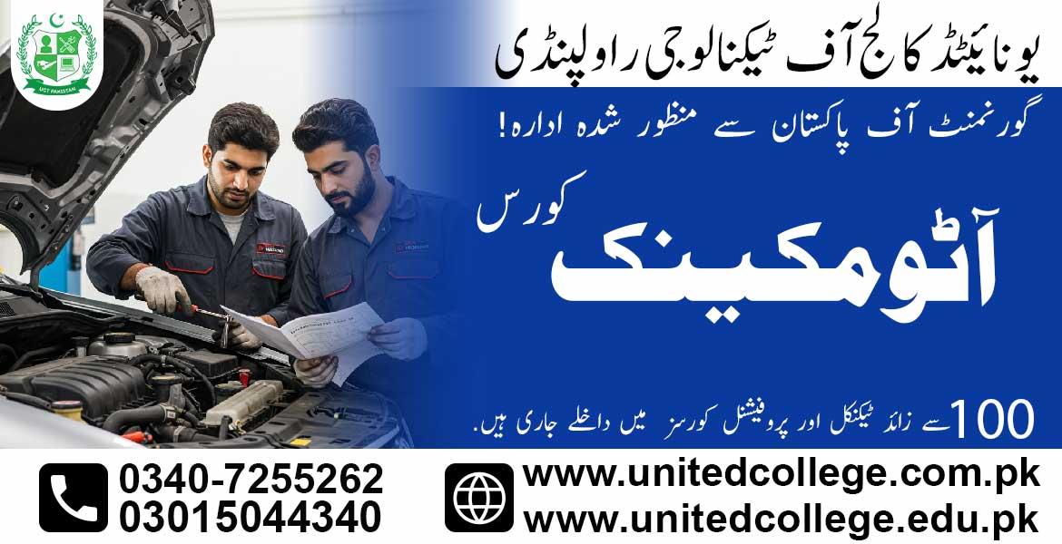 An auto mechanic course in Rawalpindi provides practical, hands-on training in vehicle repair, engine systems, brakes, and auto electrical work. Offered by United College of Technology, this course is ideal for beginners and aspiring technicians who want job-ready skills, strong career opportunities, and the option to start their own workshop or work locally and abroad.